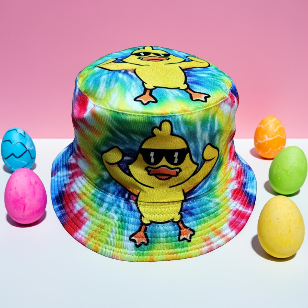 Eye catching yellow duck bucket hat for men and women, featuring stylish double-sided polyester design. Provides sun protection and breathability for all seasons. One size fit most. Perfect for festivals, outdoor, and everyday use.